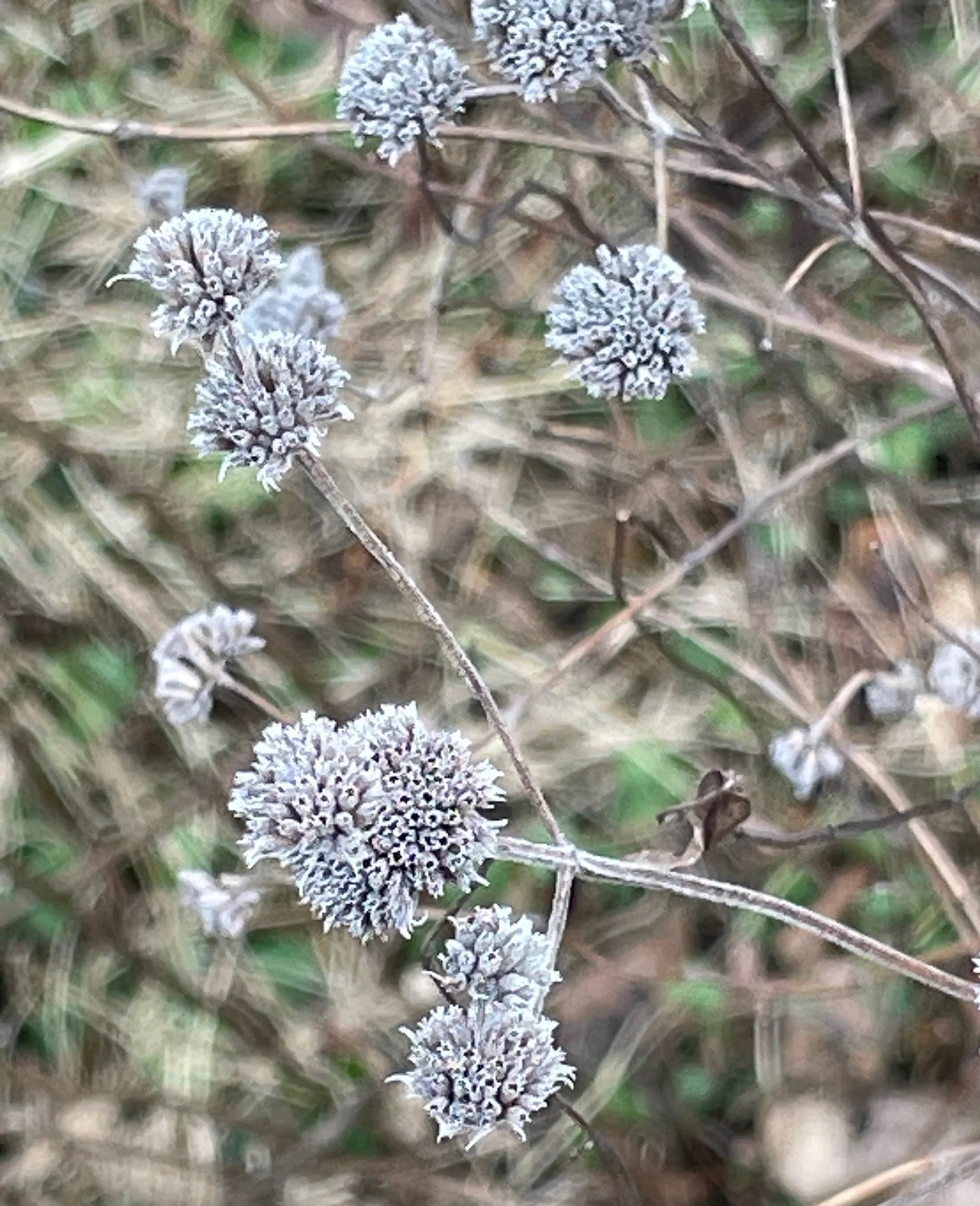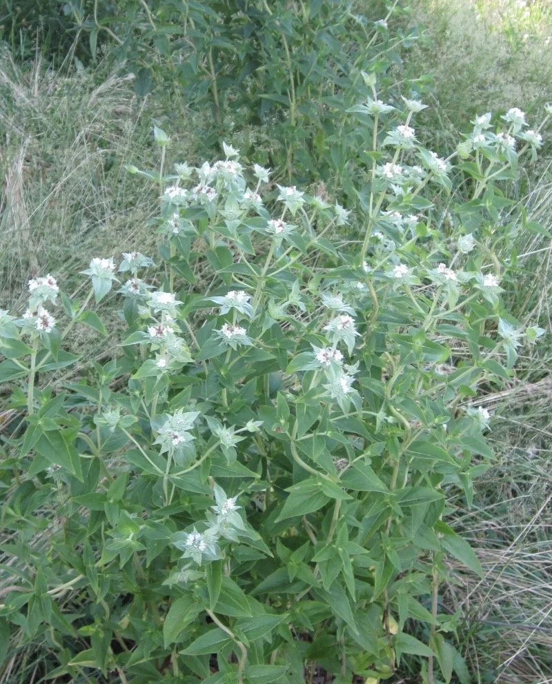 This wonderful menthol scented plant blooms nearly all summer in the meadow. Rub a leaf to experience why it is also so attractive to insects. Fortunately, though, deer and rabbits are much less fond of this flavor. With densely packed flowers, it offers a field day for nectar loving pollinators.