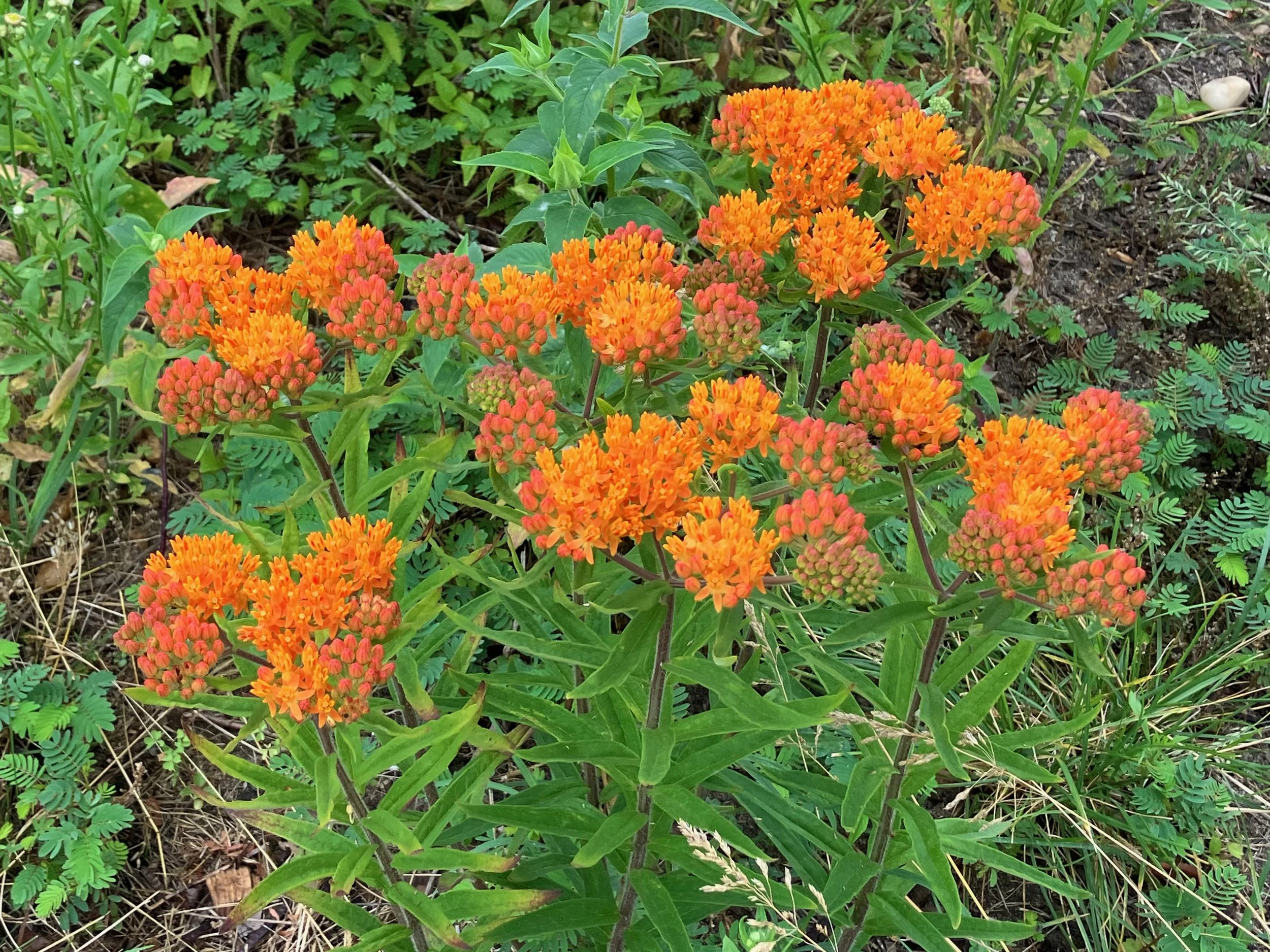 Milkweed is the host plant for the eggs and larva of Monarch butterflies, but this particular variety of milkweed, called Butterfly weed, is not a preferred host for Monarchs because its white sap is not as toxic as sap found in other milkweeds. It is this sap which gives the butterfly a terrible taste, driving off predators. Butterflies love the flowers though.