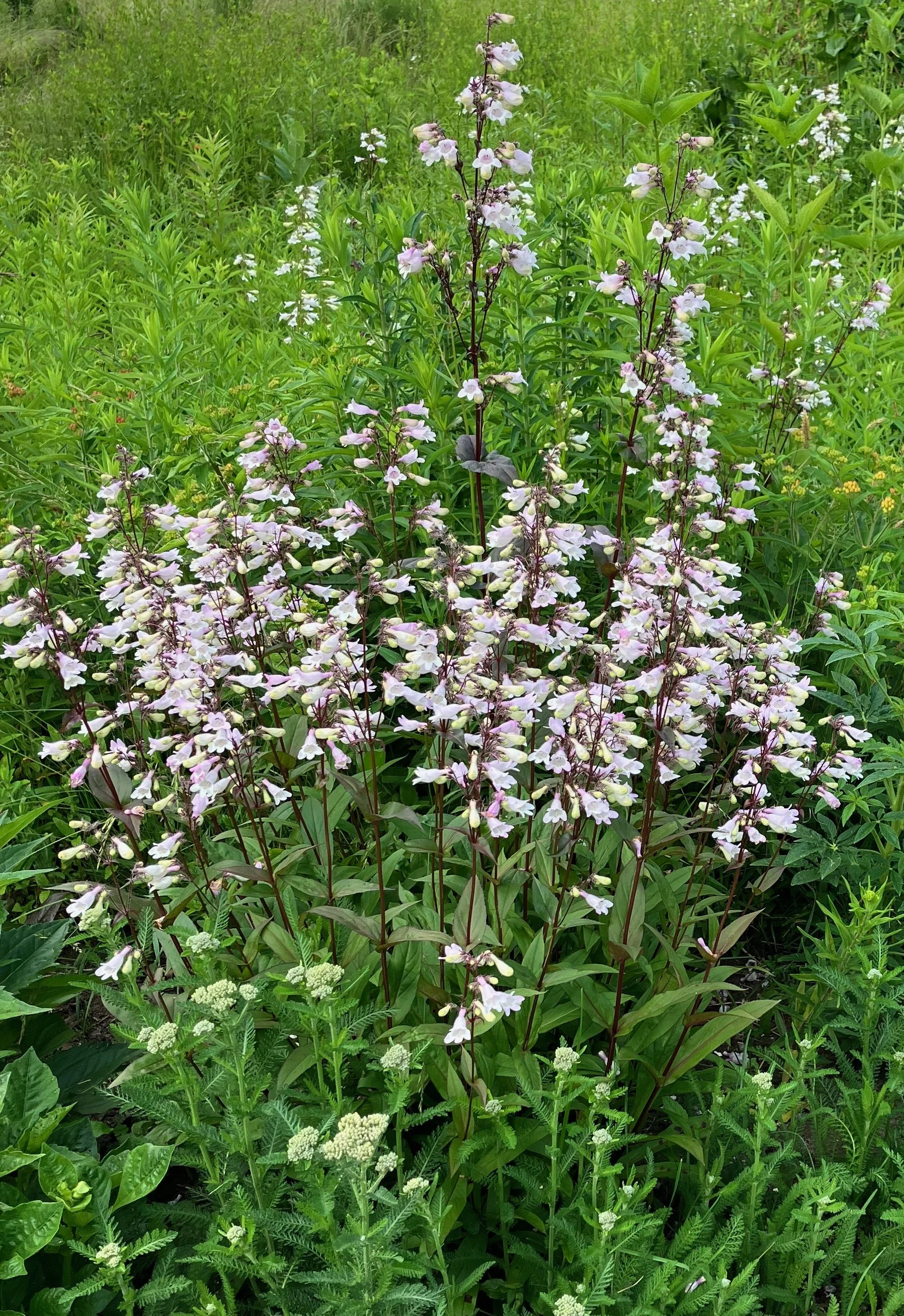 What’s in a name: In Latin, ‘penta’ means 5 and ‘stemon’ means stamen. Stamens are the male reproductive part of a flower which includes as sac of pollen at the end (anther). See if you can count 5 stamens. The common name, Foxglove Beardtongue, may come from the idea that its flowers look like fox’s open mouth with the stamens looking like a tongue. Mmmm……..