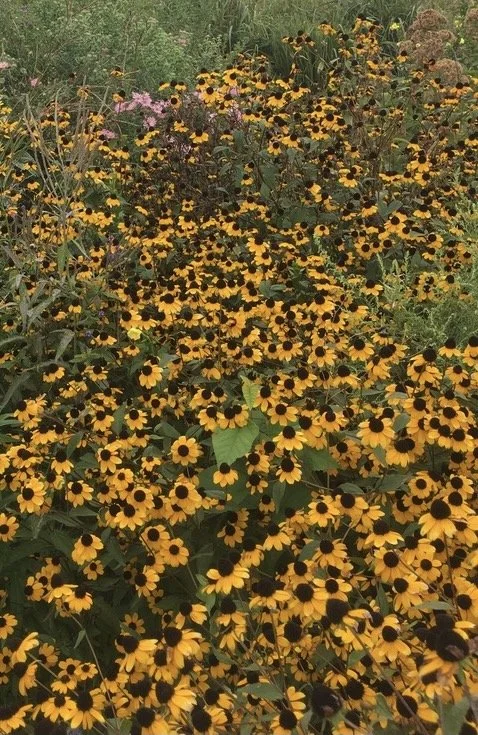 Not only does this plant provide vibrant color for most of the season, but its seed heads last through fall and winter providing food for birds. Its large dark center is a beacon for nectar loving insects and its dense growth pattern improves the fertility of the soil. A win win for our meadow.