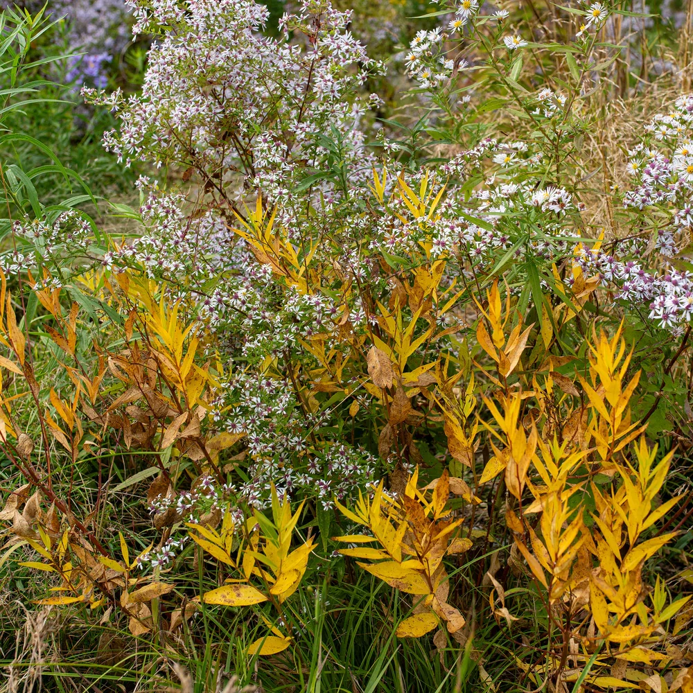 There are 25 species of this familiar roadside plant that lends bright yellow color in the late summer and fall. From an ecological perspective, it is the flower that supports the highest number of beneficial insects in this area. Moth and butterfly caterpillars which are excellent food for our song birds thrive on golden rod along with hundreds of native bees.